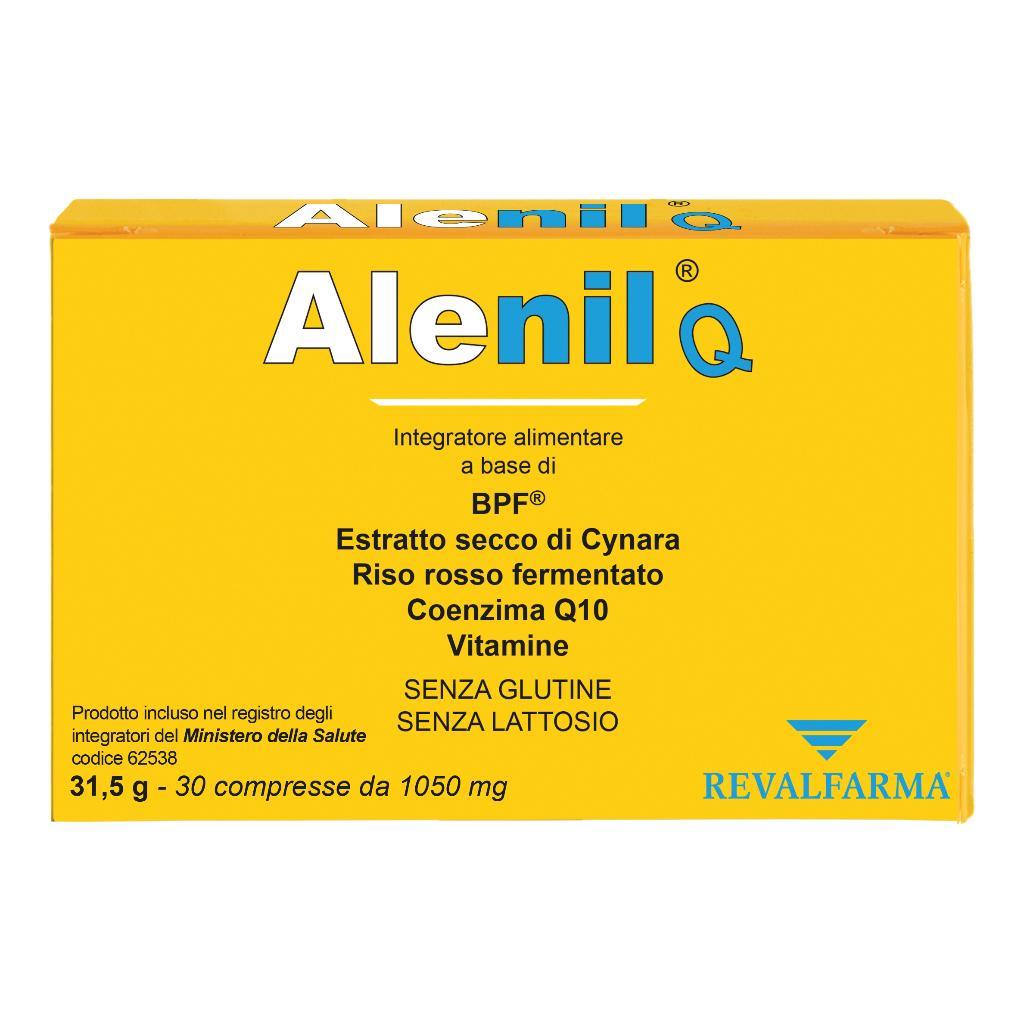 Gli integratori alimentari non vanno intesi come sostituti di una dieta variata, equilibrata e di uno stile di vita sano. Non superare la dose giornaliera raccomandata. Tenere fuori dalla portata dei bambini al di sotto dei tre anni di età. Non assumere in caso di allergia accertata o intolleranza verso uno o più componenti presenti nel prodotto. Il prodotto non deve essere consumato dalle donne in gravidanza o in allattamento, dai bambini di età inferiore a 18 anni e dagli adulti di età superiore a 70 anni. Il prodotto non deve essere consumato se si assumono medicinali per abbassare il colesterolo e se già si consumano altri prodotti contenenti riso rosso fermentato. Non assumere una quantità giornaliera di monacoline da riso rosso fermentato pari o superiore a 3 mg. La dose massima giornaliera di Alenil Q è pari ad una compressa, contenente 2,8 mg di monacoline. Consultare un medico sul consumo di questo prodotto se si manifestano problemi di salute.