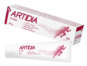 Artidia è un prodotto cosmetico formulato come emulgel a base di Arnica, Escina, Boswellia, Bromelina, Metile Salicilato ed Artiglio del Diavolo. Unitamente al massaggio, svolge un'azione emolliente e rinfrescante ed aiuta a proteggere e a mantenere in buono stato la pelle.