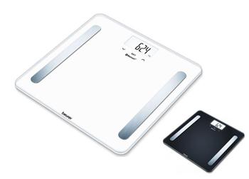 Bilancia diagnostica con trasmissione automatica dei dati nella portata del Bluetooth dopo l'apertura dell'app. Calcola peso, massa grassa, percentuale di acqua, massa muscolare, massa ossea ed è composta da un indicatore calorico AMR/BMR e IMC.