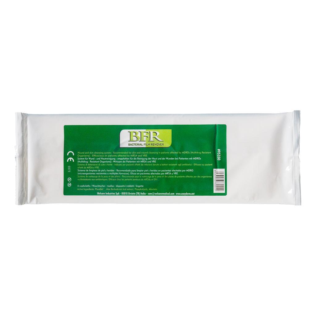 BFR BACTERIAL FILM REMOVER 4 PANNI IMBEVUTI DI SOLUZIONE ATTIVA PRONTI ALL'USO PER L'IGIENE DEI PAZIENTI AFFETTI O A RISCHIO DI INFEZIONI DA BATTERI ANTIBIOTICO RESISTENTI