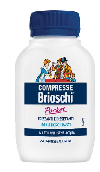 Compresse masticabili senz'acqua. Risponde alle esigenze di chi, per necessità, mangia dove capita. La pratica confezione tascabile permette di avere l'efficacia dei principi digestivi Brioschi sempre con sé, anche fuori casa.