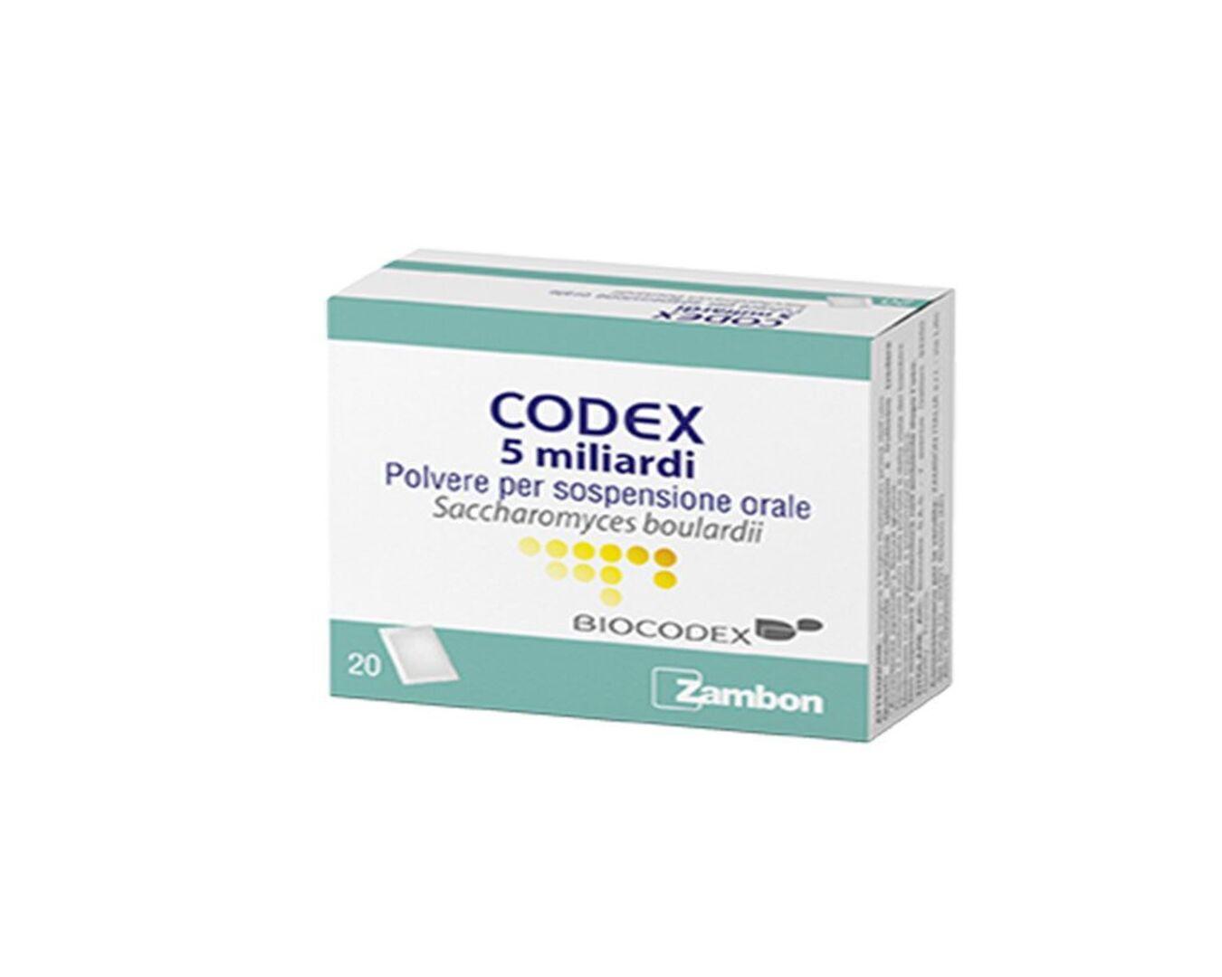 Adulti: 1-2 bustine 2 volte al giorno. Bambini da 0 a 3 anni: 1 bustina 2 volte al giorno. Bambini da 3 a 12 anni: 1 bustina 3 volte al giorno. Salvo diversa prescrizione medica. Si consiglia la somministrazione di Codex ad intervalli regolari, possibilmente a digiuno o comunque almeno 15 minuti prima dei pasti. In corso di terapia con antibiotici somministrare Codex contemporaneamente a questi. Per lattanti o bambini si consiglia di versare il contenuto della bustina nel poppatoio, o in poco liquido zuccherato. A causa del rischio di contaminazione per via aerea, le bustine non devono essere aperte negli ambienti in cui si trovano i pazienti. Durante la manipolazione dei probiotici da somministrare ai pazienti, il personale sanitario deve indossare guanti monouso, smaltirli immediatamente dopo l’uso e lavarsi accuratamente le mani (vedere paragrafo 4.4).