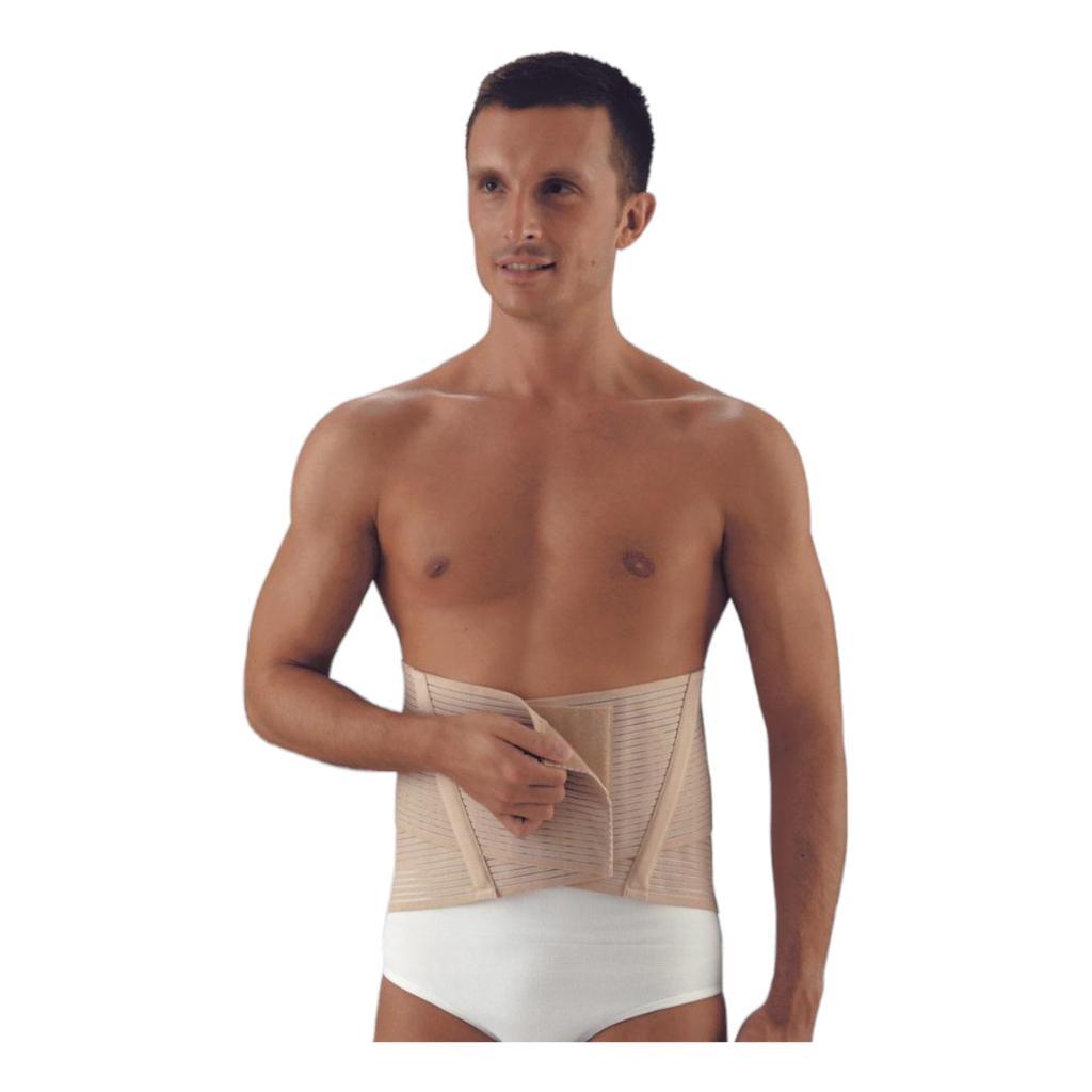 corsetto in igienico tessuto traspirante in cotone elasticizzato, rinforzato con incrocio dorsale sostenitivo.