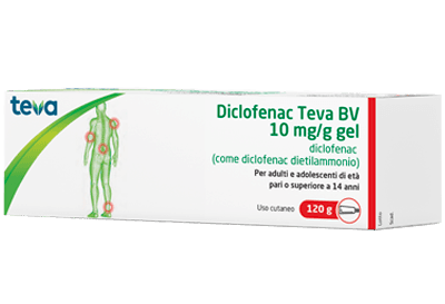 Posologia. Adulti e adolescenti di età pari o superiore a 14 anni: In base all’estensione della parte interessata da trattare, si applica 3-4 volte al giorno un quantitativo di dimensioni variabili tra una ciliegia e una noce, equivalente a 1-4 g di gel (11,6-46,4 mg di diclofenac dietilammonio corrispondenti a 10-40 mg di diclofenac sodico). Questa dose è sufficiente per trattare un’area di 400-800 cm². La dose massima giornaliera è di 16 g di gel, corrispondenti a 185,6 mg di diclofenac, sale di dietilammonio (corrispondenti a 160 mg di diclofenac sodico). La durata d’uso dipende dai sintomi e dalla malattia di base. Diclofenac Teva BV non può essere usato per più di una settimana senza consultare il medico. Se i sintomi peggiorano o non migliorano entro 3-5 giorni, occorre consultare il medico. Gruppi di pazienti speciali. Pazienti anziani: Non sono richiesti speciali adeguamenti della dose. A causa del potenziale profilo di effetti indesiderati, le persone anziane devono essere sottoposte ad un attento monitoraggio. Pazienti con compromissione della funzionalità renale: Non è necessaria alcuna riduzione della dose per i pazienti con compromissione della funzionalità renale. Pazienti con compromissione della funzionalità epatica: Non è richiesta alcuna riduzione della dose per i pazienti con compromissione della funzionalità epatica. Bambini e adolescenti (al di sotto dei 14 anni): Non sono disponibili dati sufficienti sull’efficacia e la sicurezza nei bambini e negli adolescenti al di sotto dei 14 anni (vedere paragrafo 4.3). Modo di somministrazione: Per uso cutaneo. Si applica un sottile strato di gel sulle parti del corpo interessate e si friziona delicatamente per farlo penetrare nella pelle. Le mani devono essere lavate a meno che non siano la zona da trattare. Prima di applicare un bendaggio (vedere paragrafo 4.4), occorre lasciar asciugare il gel sulla pelle per qualche minuto.