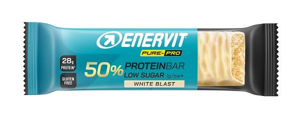 Barretta proteica ricoperta di cioccolato bianco con edulcorante. Apporta circa 28 g di proteine che contribuiscono alla crescita e al mantenimento della massa muscolare.