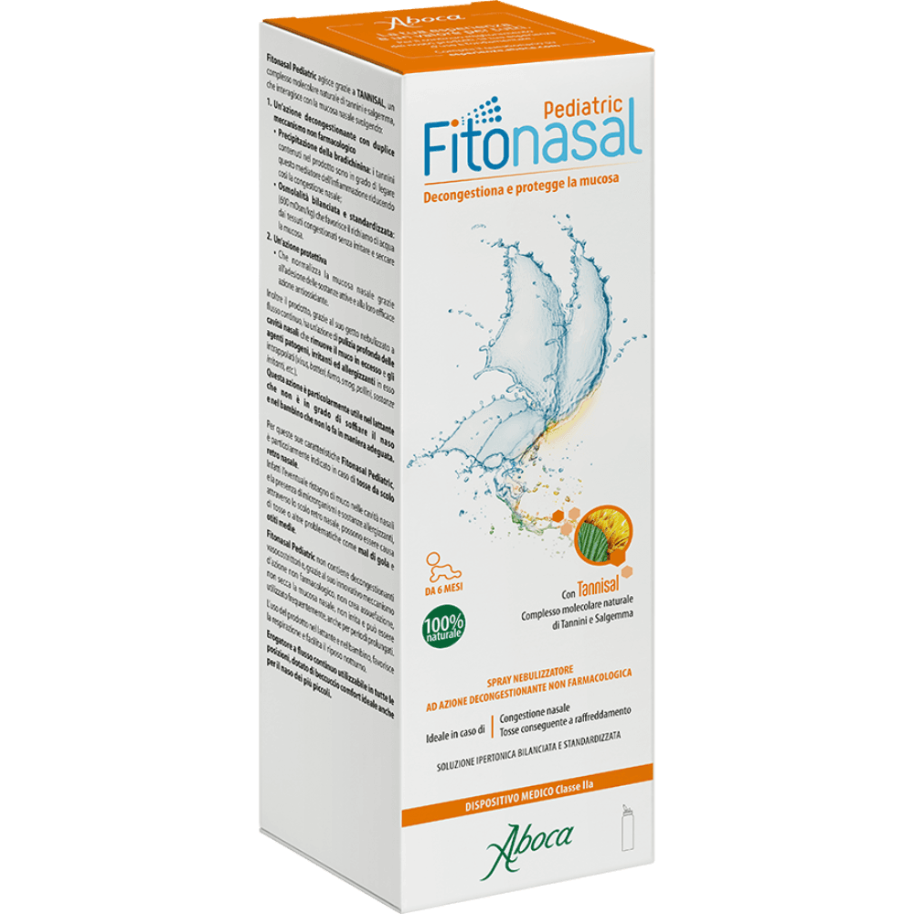 Spray nasale indicato per la prevenzione ed il trattamento della congestione e delle irritazioni delle cavità nasali dovute a sindromi influenzali, raffreddore, riniti allergiche e sinusiti sia acute che croniche. L'uso del prodotto, pertanto, favorisce la respirazione e facilita il riposo notturno nei più piccoli. Fitonasal Pediatric, inoltre, può essere usato come trattamento coadiuvante in caso di tosse e mal di gola causati da scolo retronasale e otiti medie conseguenti a congestione nasale.