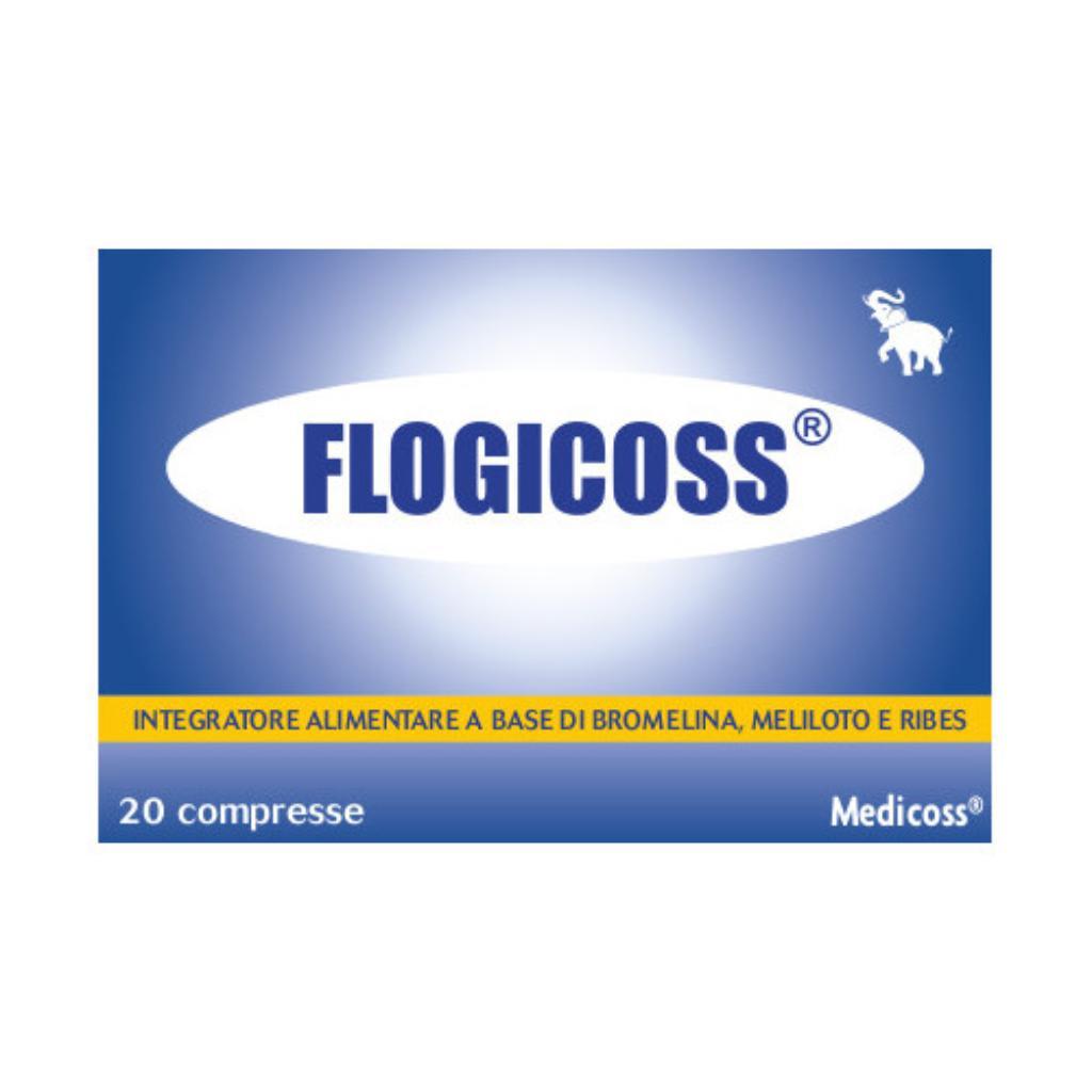 Integratore alimentare a base di bromelina, meliloto officinalis e ribes nigrum. I componenti di Flogicoss possono risultare utili per il trofismo del microcircolo, per il sistema respiratorio ed articolare. La bromelina contenuta in Flogicoss è un enzima proteolitico estratto dal gambo e frutto dell'ananas comosus, di cui sono note le proprietà antinfiammatorie e anti-edema utilizzata da tempo nel trattamento degli stati infiammatori, specie se associati alla presenza di edema. La bromelina è un utile supplemento alimentare in quelle situazioni caratterizzate da iperproduzione di sostanze flogogene a livello del distretto respiratorio, muscolo scheletrico e altri.