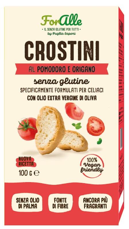 Crostini senza glutine specificamente formulati per celiaci al pomodoro e origano. Fonte di fibre.