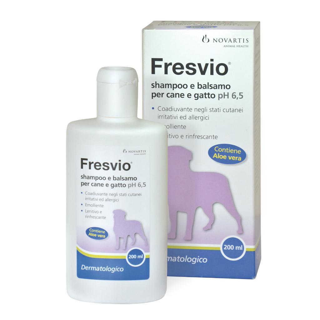 Fresvio è uno shampoo uso veterinario formulato specificatamente per conferire al mantello morbidezza e luminosità. E’ delicato con la cute e con il pelo. Ha un ruolo coadiuvante al trattamento sistemico di allergie cutanee o forme irritative, associate o meno a infezioni batteriche o fungine. Ha una formula delicata (pH 6,5) che rispetta la fisiologia pilocutanea e può anche essere utilizzato come detergente in tutti i tipi di cute, anche le più sensibili.