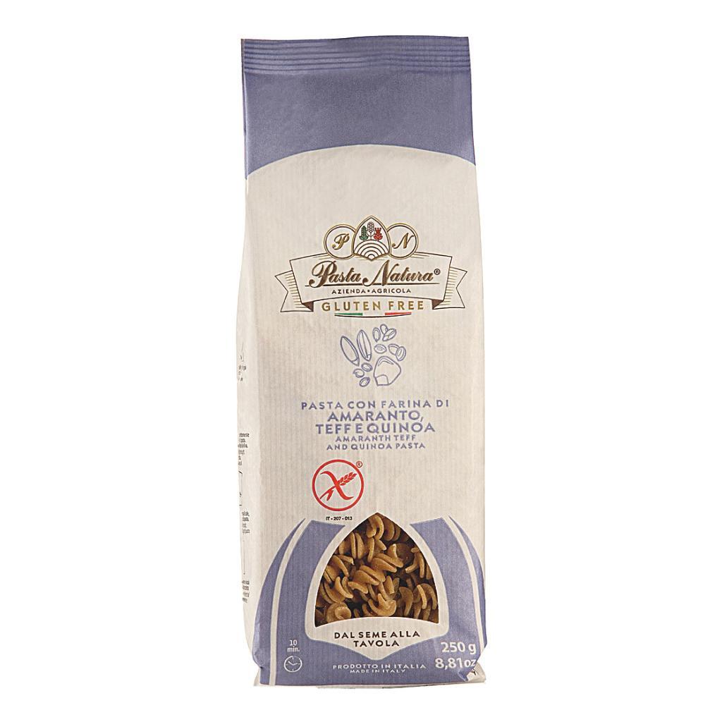 Pasta specificamente formulata per celiaci.Con farina di amaranto, quinoa e teff. Ad alto contenuto di fibre.
