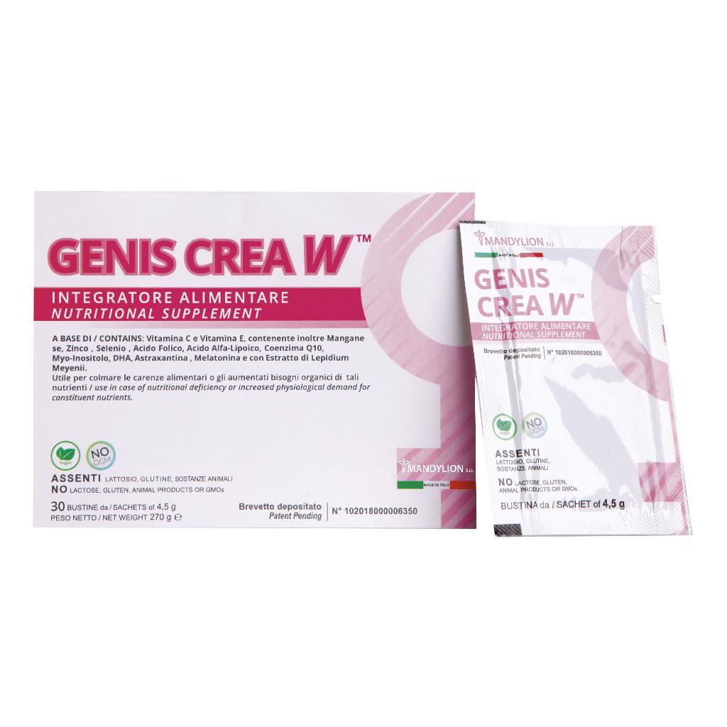 GENIS CREA M 30 BUSTINE DA 4,5 G è un integratore alimentare formulato per sostenere il sistema immunitario. Le 30 bustine da 4,5 g ciascuna contengono una combinazione di ingredienti attivi selezionati con cura per promuovere la salute e il benessere.