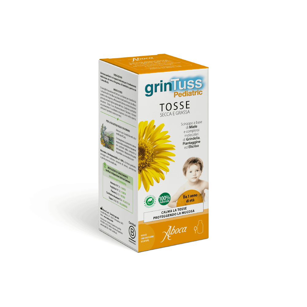dispositivo medico che calma la tosse secca e grassa senza sopprimerla, rispettandone così l’importante ruolo di difesa. Agisce sia nella fase di tosse secca, contrastando l’infiammazione della mucosa, sia nella fase con muco, favorendone l’idratazione e l’eliminazione dalle alte vie aeree. Grintuss svolge una fisiologica azione protettiva, lenitiva e antinfiammatoria sulle prime vie respiratorie come risultato dei seguenti meccanismi di azione:
