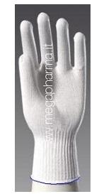 Guanti in cotone 100% colore bianco, filato makò titolo 30/4, superpettinato, gasato mercerizzato, ambidestri, tessuti a maglia, senza cuciture, polsino elasticizzato, bordino colorato a seconda della misura.Formato