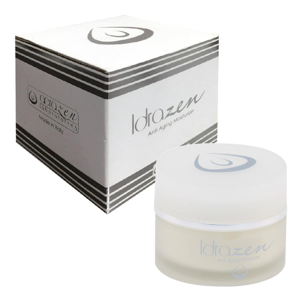 I trattamenti anti-age prevedono l'uso di prodotti cosmetici, la cui azione è volta contro processi naturali che determinano e rendono visibili i segni del tempo che passa. Lo scopo delle creme è in genere quello di agire sulla pelle rendendola giovane all'aspetto e morbida al tocco. Da ciò è stata formulata Idrazen, i cui componenti contribuiscono in sinergia, agendo su diversi fronti, ad idratare e rinnovare la cute. L'idratazione della pelle e il turnover cellulare sono favoriti dalla presenza del fattore di idratazione cutaneo, che va ad integrare quello già presente naturalmente, dal sodio ialuronato, dall'aloe, dal collagene marino, dalla bava di lumaca, ingredienti emollienti e nutritivi, che nel derma sottostante vanno a stimolare e sostenere la produzione di elastina e collagene, responsabili del turgore e tonicità della cute. La ricetta è stata arricchita dalle vitamine E ed A, resveratrolo ed estratto di ribes, ottimi antiossidanti; gli studi su queste sostante hanno dimostrato che la loro attività contro lo stress ossidativo causato dai radicali liberi è notevolmente aumentata quando lavorano in sinergia. Questa formulazione rende Idrazen un alleato perfetto per combattere l'invecchiamento della pelle e per proteggersi dalle aggressioni di agenti chimico-fisici esterni, rendendo il viso sano e rivitalizzato.