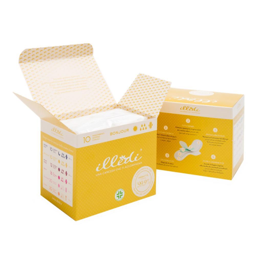 Gli assorbenti illedi sono prodotti con nano tecnologie agli ioni argento (nano silver). Vengono realizzati con materiali microforati e colla alimentare che generano un alto potere traspirante e una rapida dispersione del calore. Possono essere indossati per un tempo prolungato (4-8 ore).