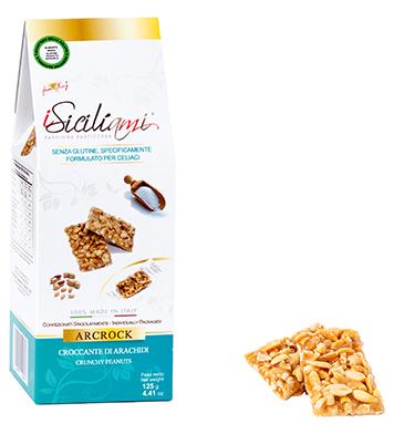 Croccante di arachidi. Prodotto artigianale confezionato singolarmente. Prodotto notificato dal ministero della salute come prodotto dietetico senza glutine, iscritto nel registro nazionale.