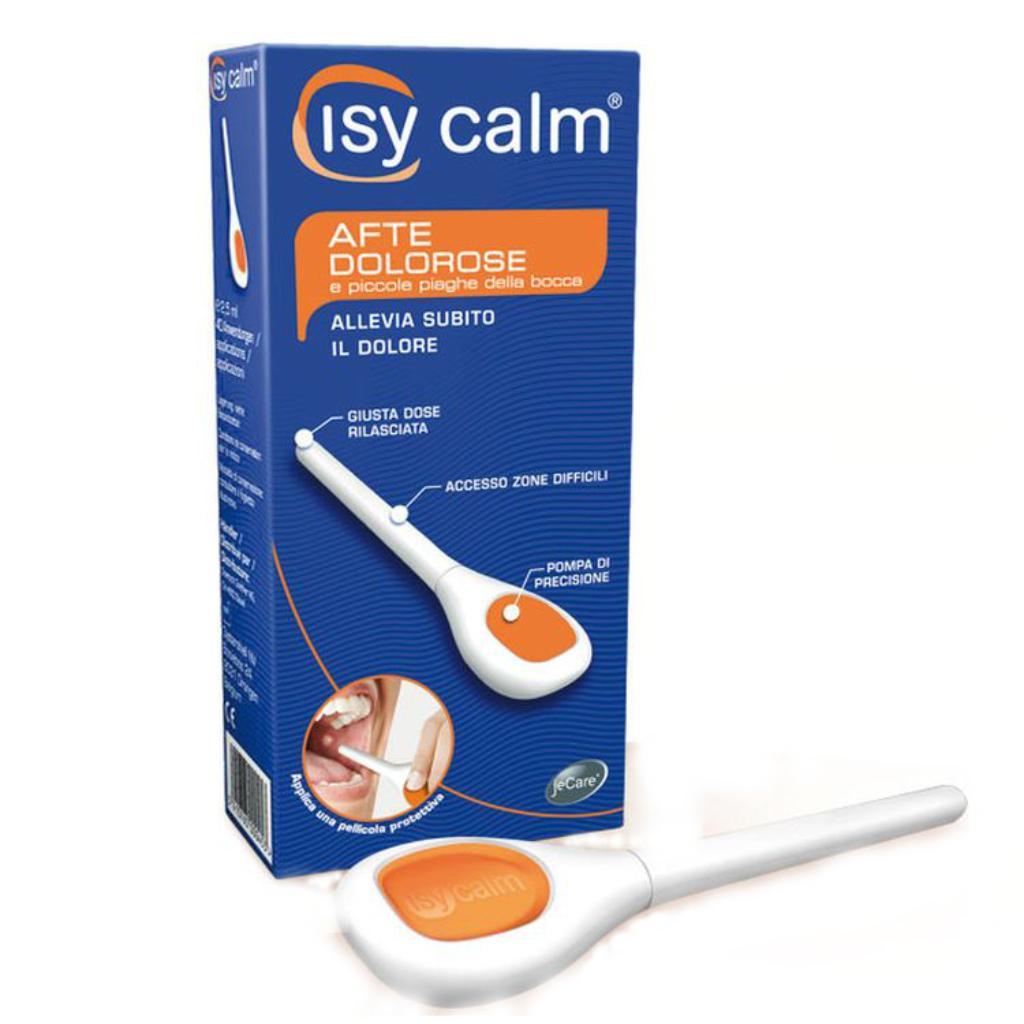 3)-Premere sul pulsante arancione “Isycalm®”: verrà rilasciata la giusta dose in modo da ricoprire interamente la superficie dell’afta.