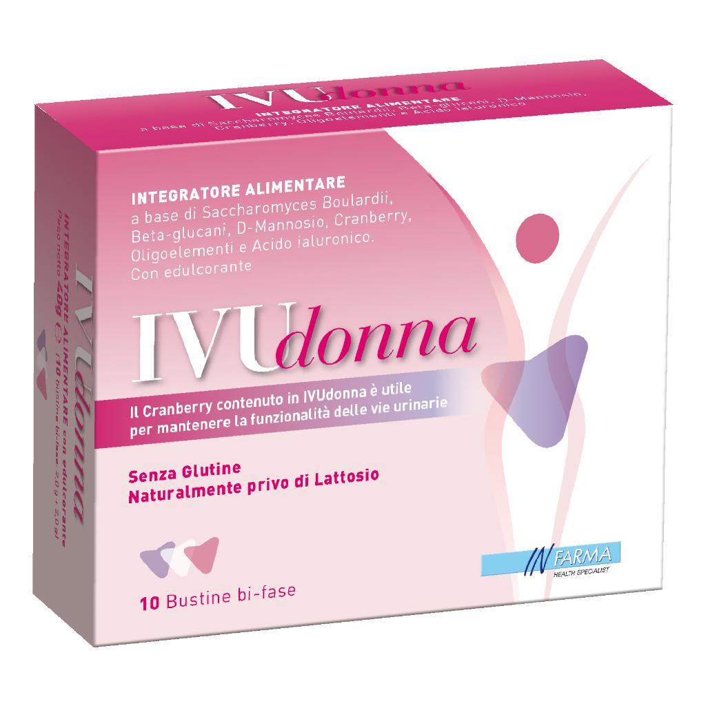 Integratore alimentare a base di Saccharomyces boulardii, utile per favorire l'equilibrio della flora intestinale, e cranberry, per il benessere del sistema urinario. IVU donna è arricchito con beta-glucani, D-mannosio, acido ialuronico e oligoelementi quali zinco e selenio che contribuiscono alla protezione delle cellule dallo stress ossidativo e alla normale funzione del sistema immunitario.