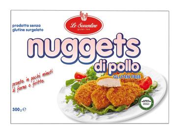 Carne di pollo di origine italiana 35%, carne di pollo separata meccanicamente 28%, panatura senza glutine (amido di mais, lievito di birra, olio extravergine di oliva, farina di mais, fibre vegetali, destrosio; addensanti: farina di semi di guar, idrossipropilmetilcellulosa; sale, zucchero, sodio acetato, farina di grano saraceno; emulsionanti: mono e digliceridi degli acidi grassi; spezie: curcuma, paprica; aromi); amido di patate, albume d'uovo, crema di riso, uova in polvere, farina di semi di guar, proteine del latte, senape, spezie, aromi. Prodotto in uno stabilimento che utilizza frutta a guscio, latte e uova.