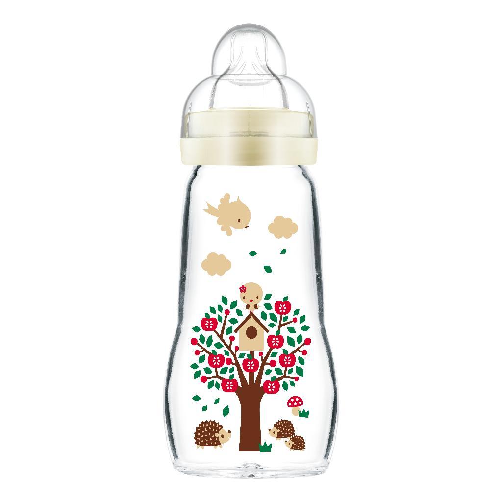 Biberon in vetro resistente alle alte temperature, che può essere riscaldato senza problemi, si raffredda velocemente, è lavabile in lavastoviglie e sterilizzabile a temperature elevate.La scala sul retro di facile lettura favorisce il dosaggio corretto.