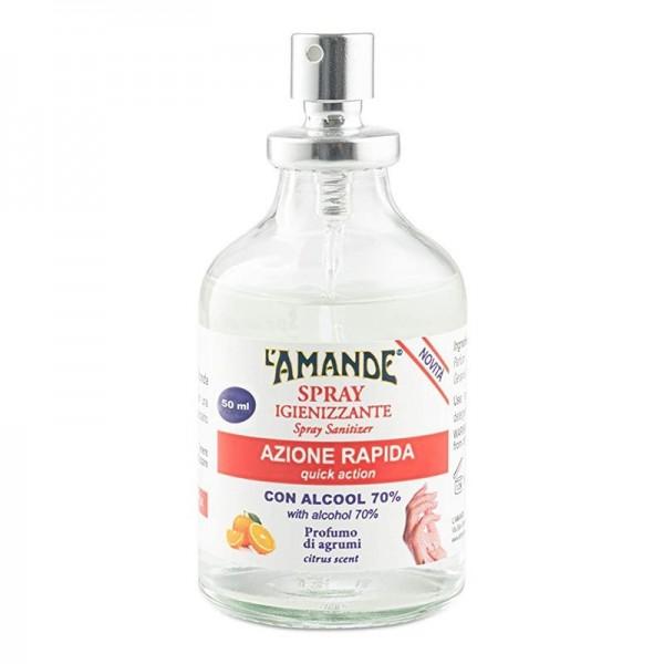 Spray igienizzante. Formulazione alcolica (alcohol 70%). Per un'azione igienizzante più profonda. Profumo di agrumi.