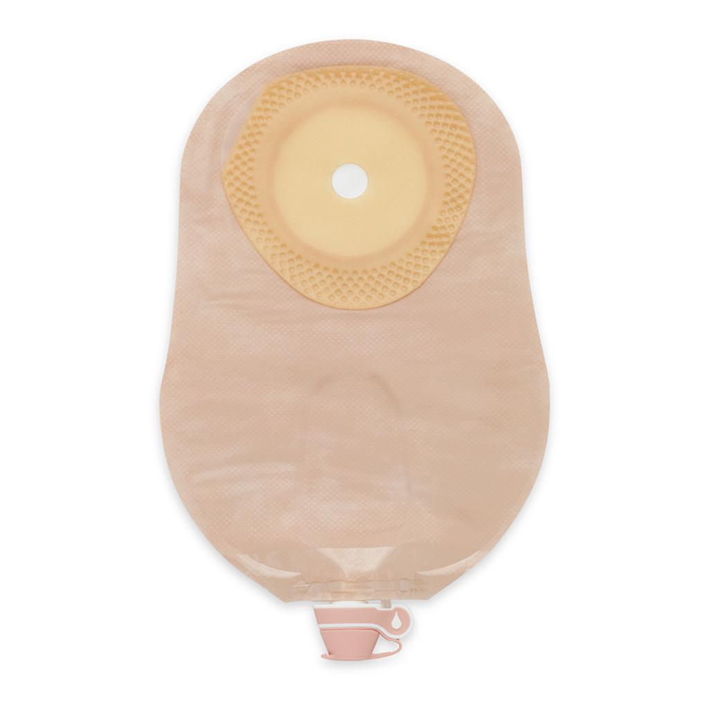 Dispositivo medico monopezzo, indicato per la raccolta delle urine, dalla forma anatomica con ampia capacita di contenimento. Placca triangolare con spigoli arrotondati 100x100 mm circa, permette di massimizzare il comfort e sicurezza nelle aree sottoposte a trazione. Idrocolloide SoftFlex, unisce resistenza ed eccezionale tollerabilità cutanea. Ideale per ogni tipo di pelle, non irrita alla rimozione. Barriera protettiva autoportante con micro alveoli integrati estremamente flessibile: si adatta perfettamente alla cute e ne consente la traspirazione, preservandone l'equilibrio idro-lipidico. Pellicola di protezione con linguetta e guida al ritaglio, facilita l'ispezione, la preparazione e l'applicazione dell'idrocolloide. Struttura interna a Camere Multiple: mantiene la forma ed evita lo sciabordio per massima discrezione e comfort durante l'utilizzo. Pellicola laminata a 5 strati Quiet Film, anti-fruscio, anti-odore, morbida e delicata al contatto con la cute. Rivestimento in T.N.T. (tessuto non tessuto) Comfort Wear (solo lato corpo nella versione trasparente) non trattiene l'umidità, morbido, traspirante e si asciuga facilmente. Color pelle per maggior discrezione. Dispositivo interno antireflusso sagomato, trattiene l'urina nella parte inferiore della sacca. Funzionale in qualunque posizione. Valvola di scarico brevettata, con indicatore ottico e tattile di apertura, ampio diametro, bloccaggio di sicurezza e tappino salva-goccia di sicurezza integrato. Sicura, pratica discreta e funzionale, permette di regolare il flusso alla velocita desiderata ed assicura un veloce drenaggio anche in presenza di muco. 10 adattatori antitorsione, con aggancio a pressione, di uso facile e sicuro per raccordare la sacca urina.