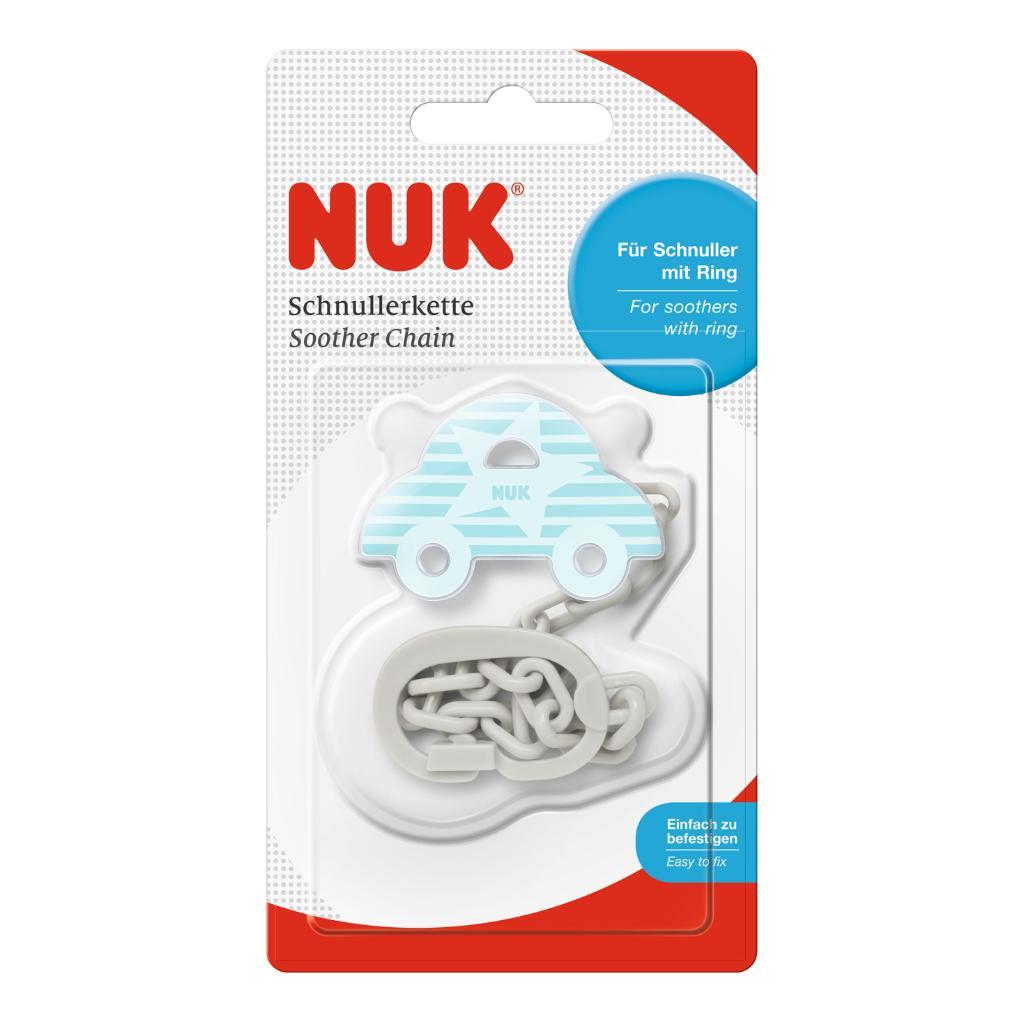 La Catenella Porta Succhietto NUK ha una pratica clip che permette di attaccare facilmente il succhietto ai vestiti o al passeggino del bambino. Vi è inoltre un efficiente dispositivo di aggancio appositamente concepito per rendere più semplice fissare la catenella al succhietto.