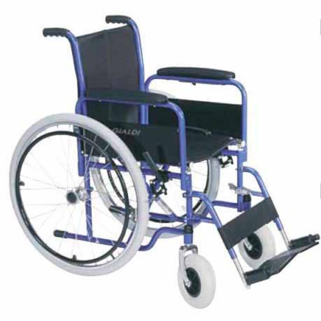 PIEGHEVOLE CON STABILIZZATORE MODELLO RGL. STRUTTURA IN ACCIAIO CON TELAIO STABILIZZANTE. BRACCIOLI ESTRAIBILI, FRENI D ISTAZIONAMENTO, PEDANE REGOLABILI IN ALTEZZA