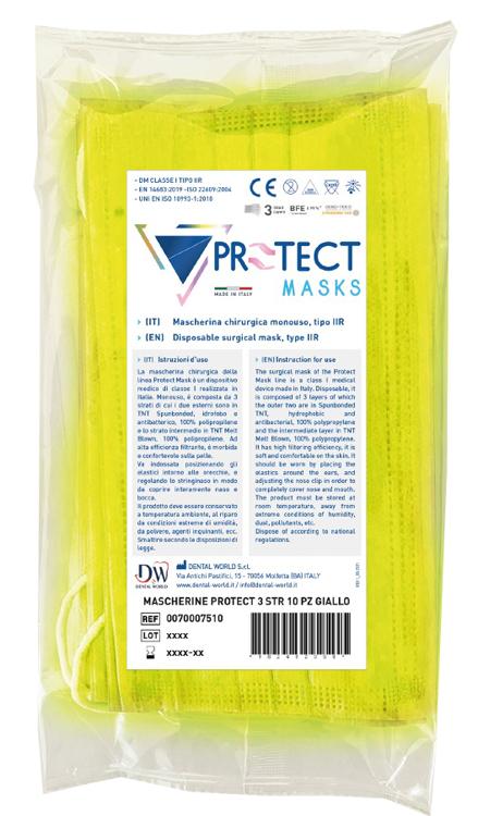 PROTECT MASKS MASCHERINA CHIRURGICA MONOUSO 3 STRATI TNT YELLOW 10 PEZZI
