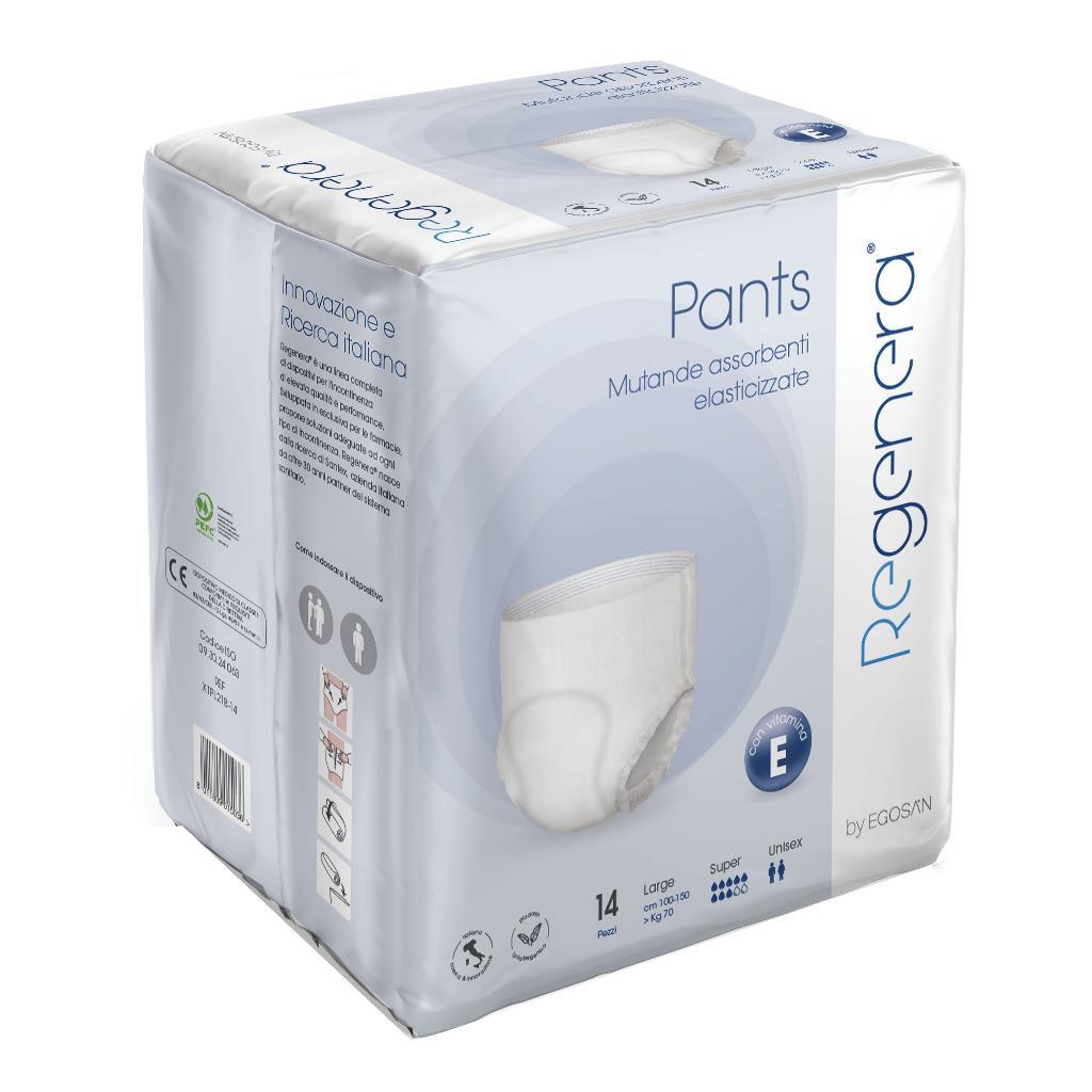 MUTANDE ASSORBENTI PER INCONTINENZA REGENERA PANTS SUPER ELASTICIZZATE TRASPIRANTI CON VITA SOFT SYSTEM E VITAMINA E LARGE SUPER 14 PEZZI