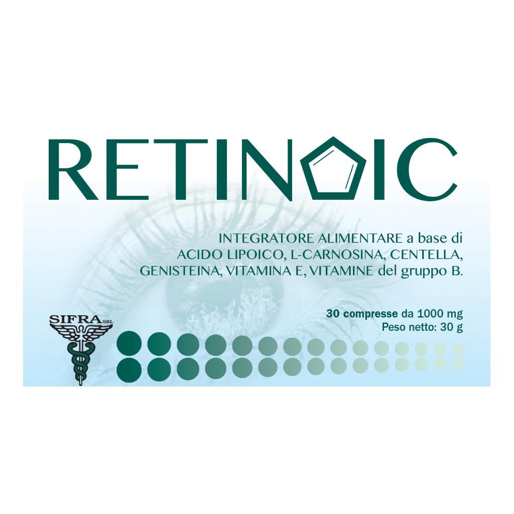 Retinoic è un integratore che protegge la retina da patologie degenerative. Migliora la normale capacità visiva, il normale funzionamento del sistema nervoso e svolge un’importante azione antiossidante che protegge le cellule dallo stress visivo. Può essere un valido aiuto nella prevenzione di fenomeni infiammatori e ossidativi a carico delle cellule retiniche che possono portare a retinopatie, anche diabetiche, oltre che microangiopatie e patologie come la degenerazione maculare senile.