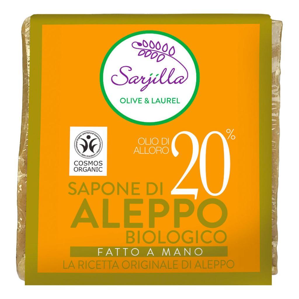 Il sapone solido 20% di Aleppo certificato biologico Sarjilla è composto da olio di oliva biologico e olio di bacche di alloro biologico ed è indicato per pelli sensibili e delicate.
