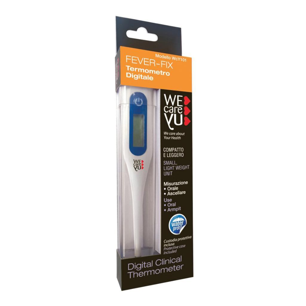 Confezione contenente 1 termometro digitale e custodia protettiva.