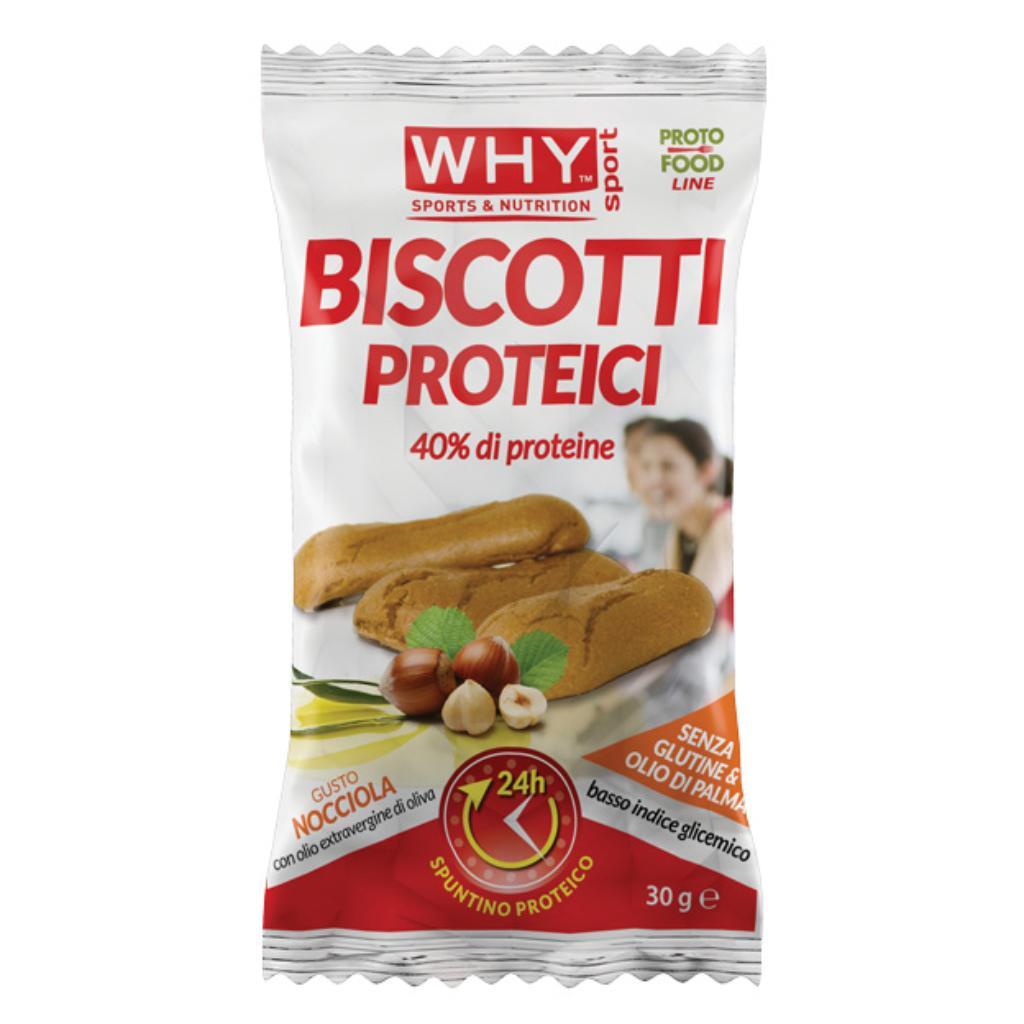 DescrizioneBiscotti proteici con edulcoranti gusto nocciola.