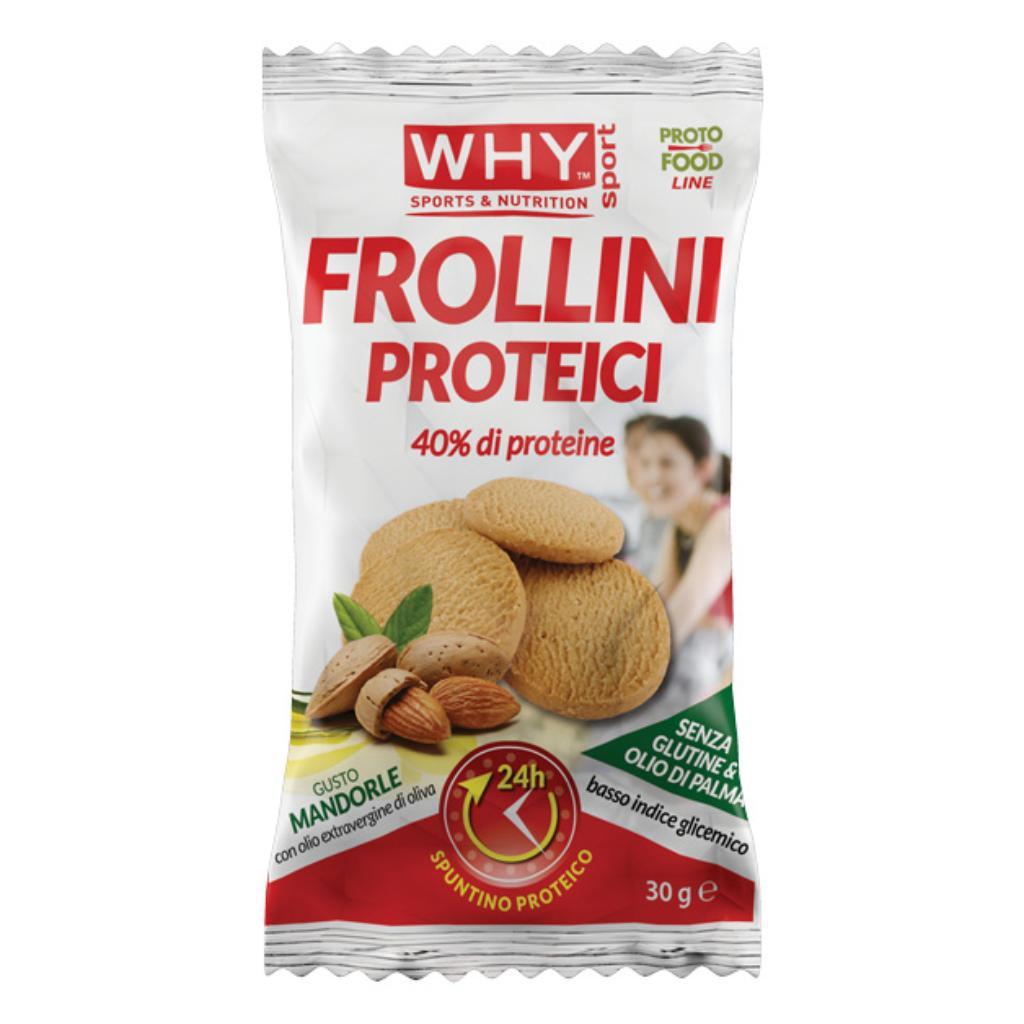 DescrizioneFrollini proteici con edulcoranti gusto mandorla.