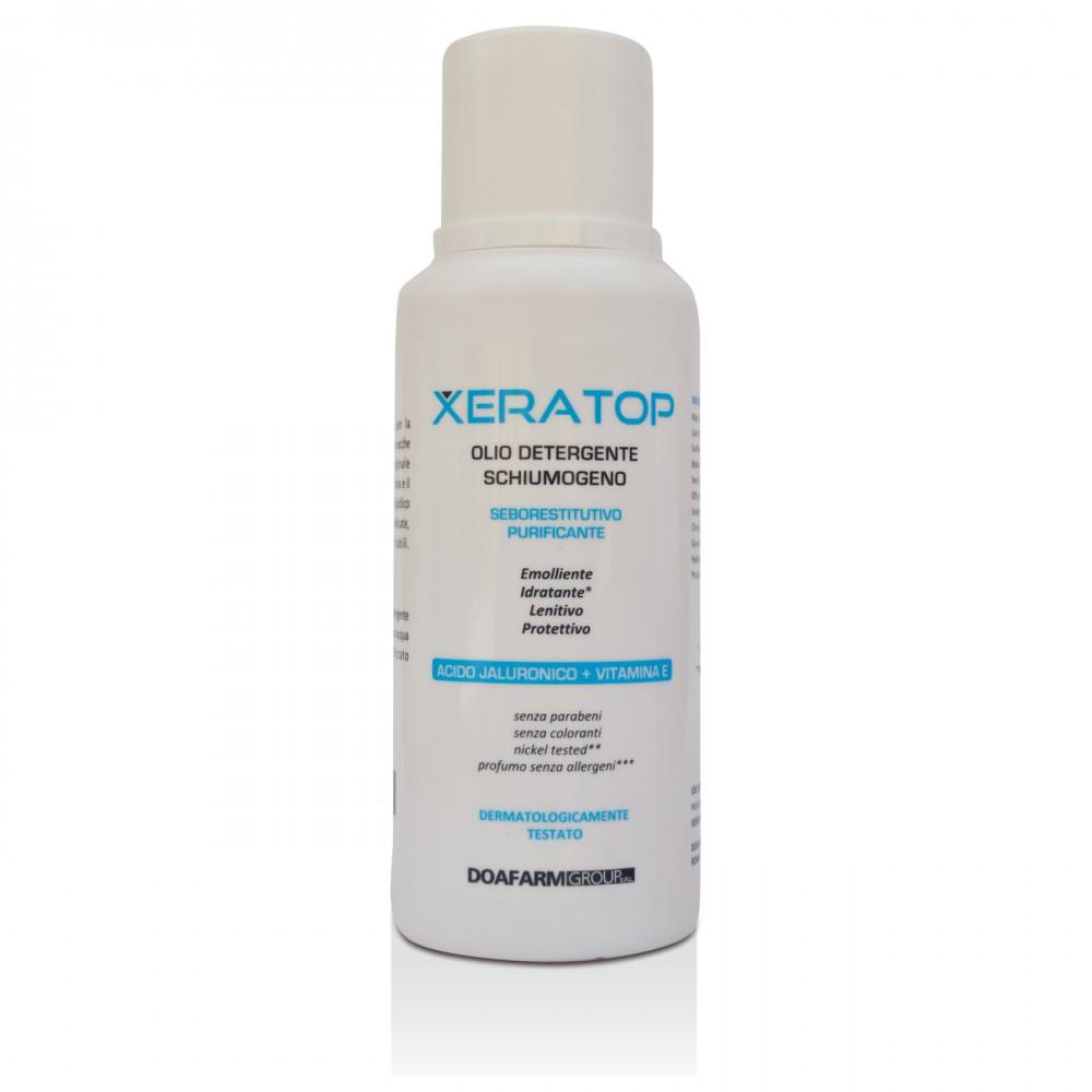 XERATOP OLIO detergente schiumogeno è stato specificamente formulato per la detersione viso e corpo di pelli sensibili, secche,molto secche e/o arrossate. Allevia il prurito. Grazie alle sostanze attive in esso contenute (oli, acido jaluronico, vitamina E, aloe vera, dipotassio glicirizzinato, bisabololo) previene la secchezza e favorisce il ripristino ed il mantenimento del film idrolipidico cutaneo.